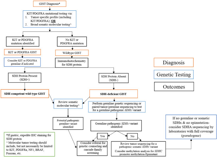 •  The recommendation that all individuals with SDH-deficient GIST, regardless of germline testing results, undergo continued monitoring for additional SDHx-related tumors.