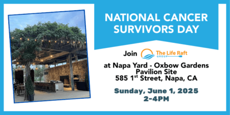 Come join The Life Raft Group at Napa Yard – Oxbow Gardens (in the Pavilion) to socialize on National Cancer Survivors Day. Enjoy good company, delicious food, share stories and raise funds for GIST cancer research. Join the celebration and make an impact in patients’ lives at the beautiful Napa Yard with The Life Raft Group’s Christa Pereira, Jerry Call, & Brian Morello.